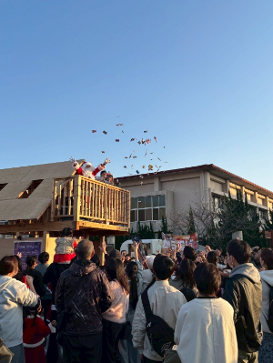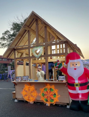 観光文化学科では、12月7日にみやこ町役場前で開催された「クリスマスフェス」において、企画から運営までを担当させていただきました。冬ならではのイベントを通して、たくさんの方々にみやこ町の魅力をもっと知っていただくことを目的として、みやこ町で初めて開催されたものです。
